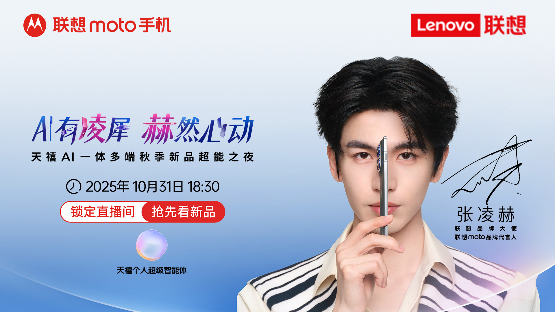 与张凌赫一起“AI有凌犀,赫然心动“,见证联想天禧个人超级智能体3.5版本的重大升级,迎接联想moto X70Air等重磅新品和双11促销福利发布。