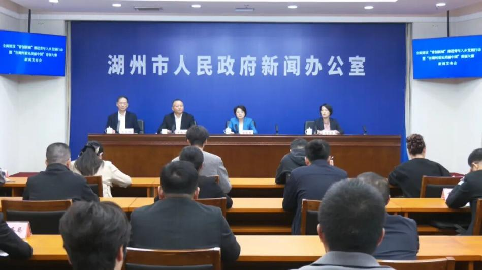 今天上午,湖州市人民政府新闻办公室召开全面建设“青创新城”推进青年入乡发展行动暨“在湖州看见美丽中国”青创大赛新闻发布会,介绍有关情况并回答媒体记者的提问。