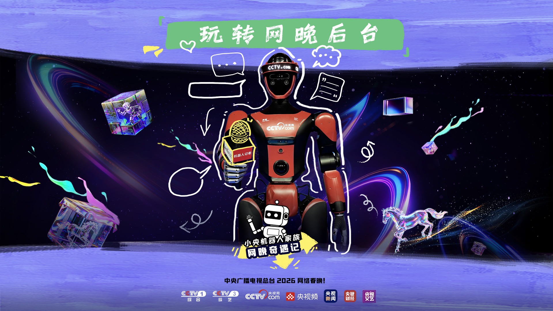 总台网络春晚后台 机器人小央和余小宇一起耍花枪